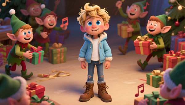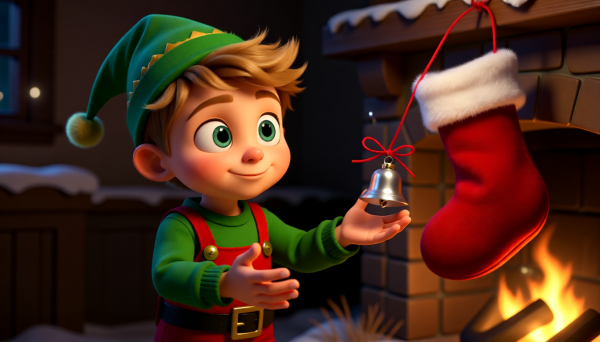 On Christmas Eve, a child is magically taken from a bedroom to Santa’s busy workshop. Santa names the child “Helper of the Day,” and the child learns to wrap gifts, test toys, and sort presents with the elves. After a few funny mistakes and a moment of teamwork, Santa rewards the helper with a silver bell that rings only for those who believe in kindness. A warm glow returns the child home, where the bell still sparkles on the pillow. When it’s shaken, it rings once—Santa’s way of saying he remembers the magical night as an elf for a day.